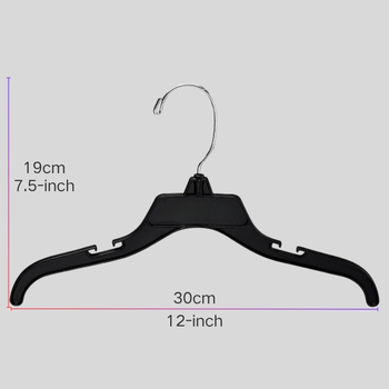 Appendiabiti in plastica nera da 12 pollici con gancio di zinco stampati personalizzati da 30cm per bambini per abbigliamento e viaggi